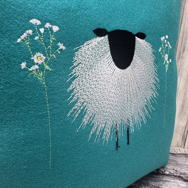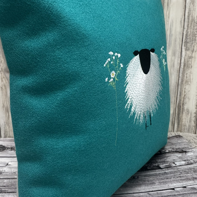16” Yorkshire Lambswool Teal Sheep Cushion